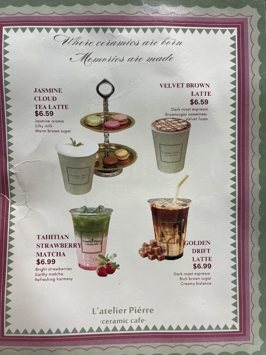 L’atelier Piérre Ceramic Cafe Menu